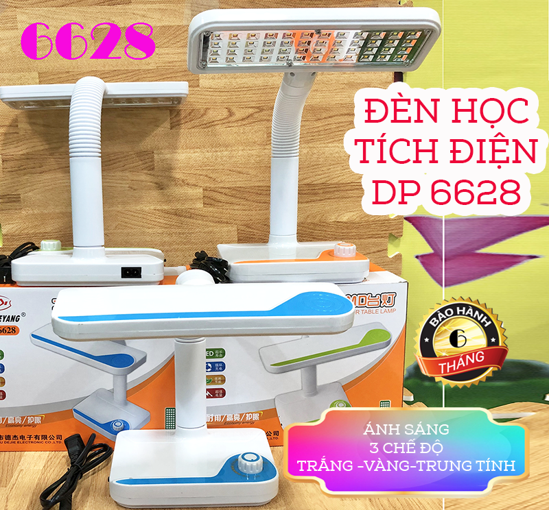 ĐÈN BÀN HỌC 48 LED PIN SẠC SIÊU SÁNG FULL BOX 6628