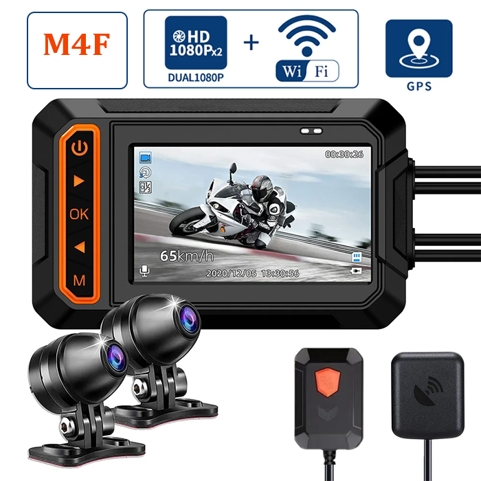 CAMERA HÌNH TRÌNH XE MÁY M4F GSP+WIFI DVR DASHCAM1080P+1080P