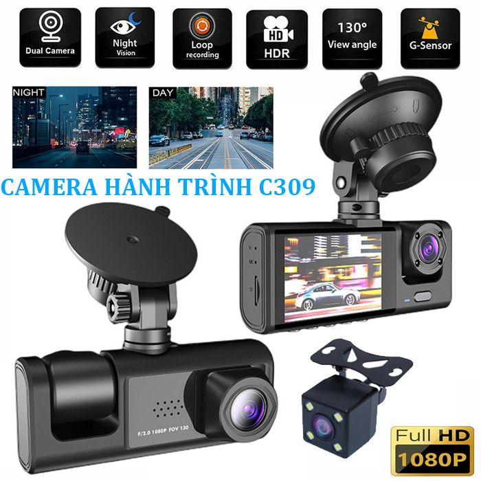 Camera hành trình ô tô C309 có ghi âm hỗ trợ tới 3 camera